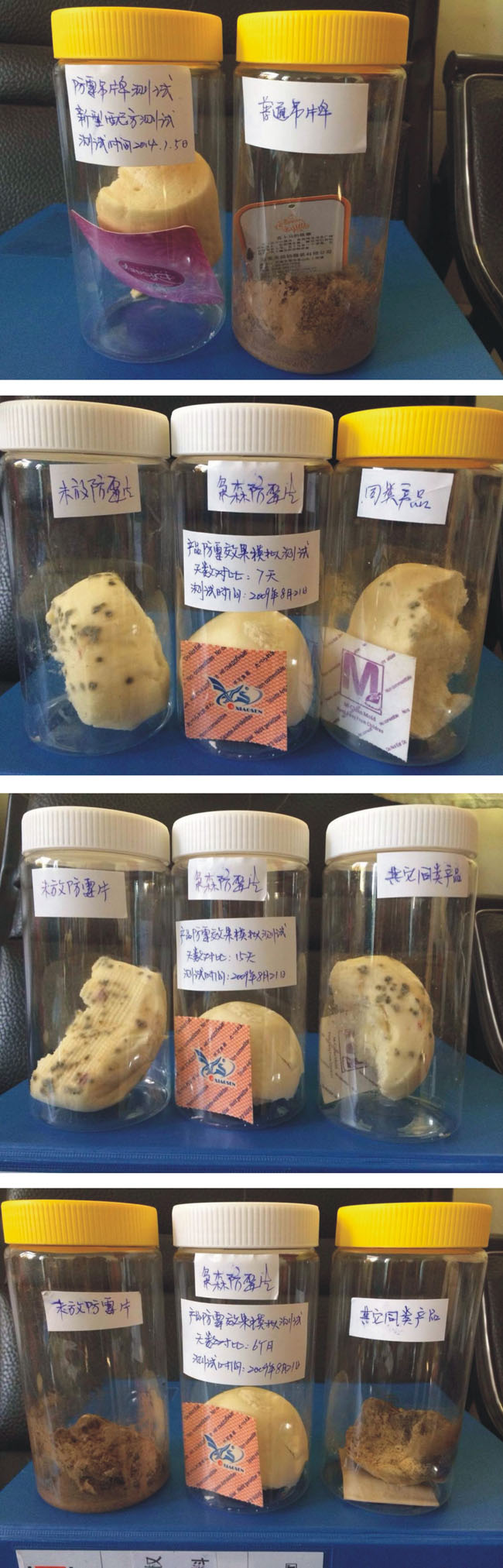 防霉模擬測式法。在隨大貨抽檢撕下一片防霉片放入透明的玻璃杯中,再在杯中放入半個饅頭,同時準(zhǔn)備兩個杯,一個放防霉片,一個不放防霉片,同時蓋好兩個杯子的杯蓋。在把杯蓋上寫好作實(shí)驗(yàn)的時間,這樣兩個杯子的模擬測試就作成了。28天內(nèi)你可以隨時觀察兩個杯子的發(fā)霉情況,如果放防霉片的杯子在3到6個月沒啥變化,那么這個品牌的防霉片就絕對沒有問題了!